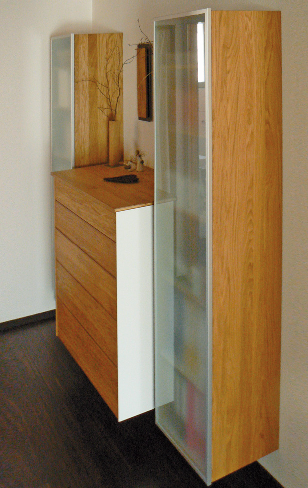Sie suchen mehr Raum, mehr Komfort (z.B. durch leichtgängige Aus­züge), mehr Flexibilität und obendrein mehr Stimmung? Dank in­telli­genter Schrank­aufteilung, leichtgängiger Auszüge,  schwebende Schiebe­türen und  indirekter Beleuchtung können wir Ihnen diese Wünsche erfüllen. Einbauschränke, Zimmertüren, Decken­ver­klei­dungen, Parkett- oder Laminatböden, Garderoben, intelligente Kombi­nationen aus Wohnen und Arbeiten sind unser Angebot an Sie.